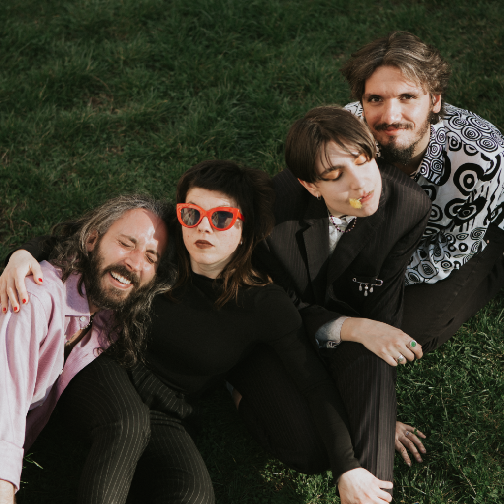 Zimbru are a tight-knit four piece of best friends playing a wild mix of raspy synthesizers, angular guitar riffs and lively percussion all topped off by stories of dancing, lost pets, queer love and nostalgia for never experienced past decades. Most easily described as art-rock, the band comes from Cluj-Napoca, Romania & is composed of Teodora Retegan, Paul Bucovesan, Andrei Bobiș and Oana Pop.
